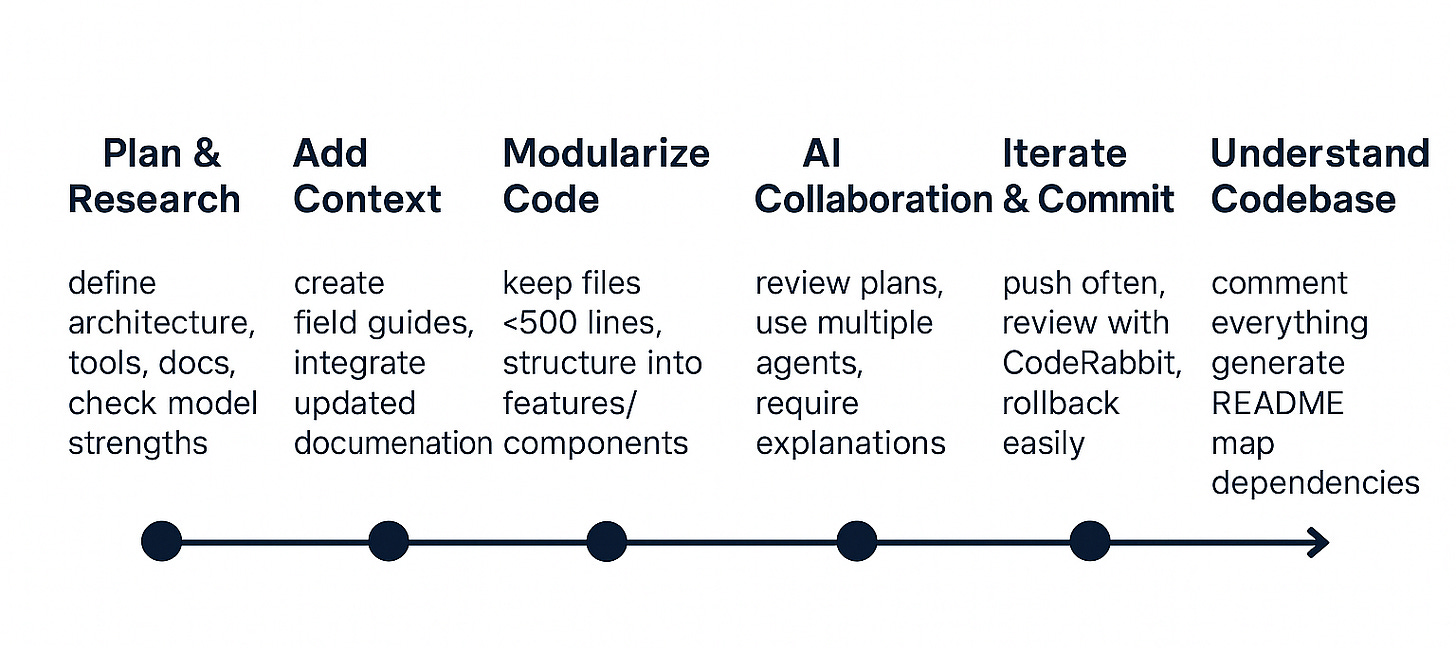 At the end of the day, vibe coding is about being intentional. Go step by step. Understand what you’re building and why. Give the AI the right context, make it explain itself, and keep your code modular. If you do that, you’ll spend way less time debugging and way more time shipping, and that’s what will set you apart from the average developer.
